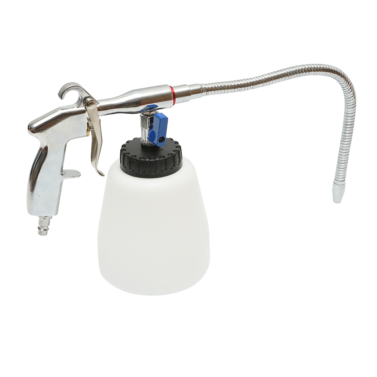 Este echipat cu o duza metalica flexibila tip spirala, ce permite accesul in zone greu accesibile. Rezervorul de 1 litru este suficient pentru solutie de curatare sau degresant, iar supapa metalica permite control precis al fluxului.