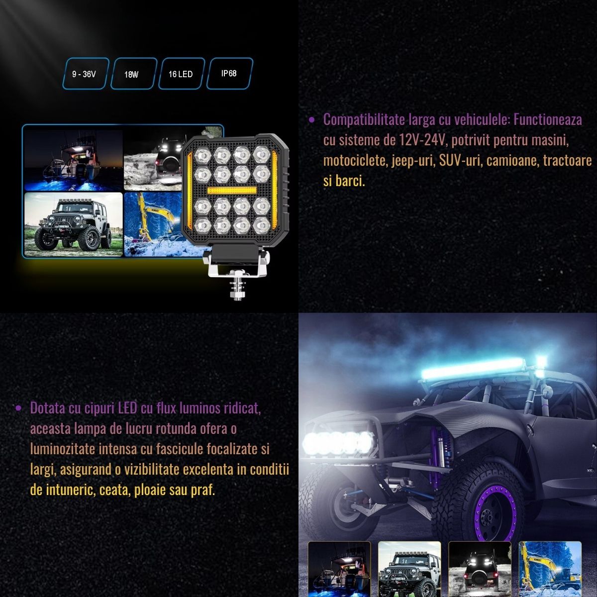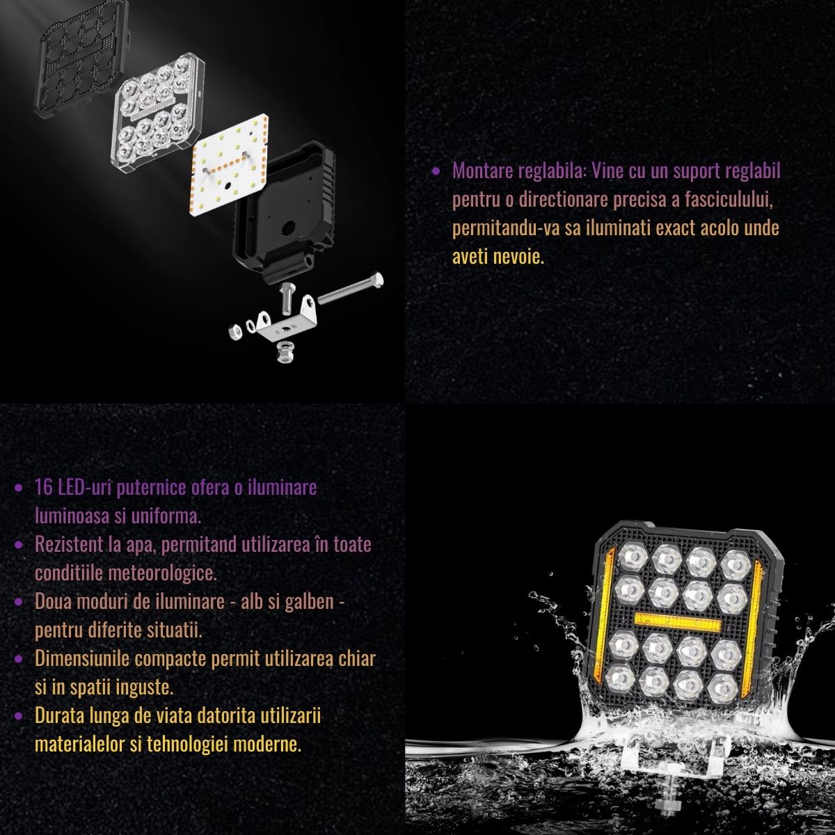 | Tip lumina | 16 LED-uri tip spot (alb) + DRL (galben) |
