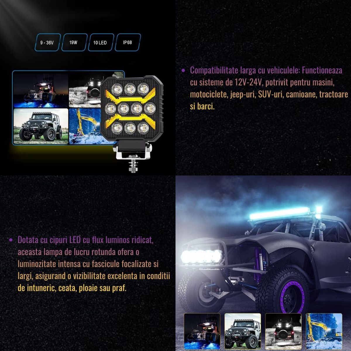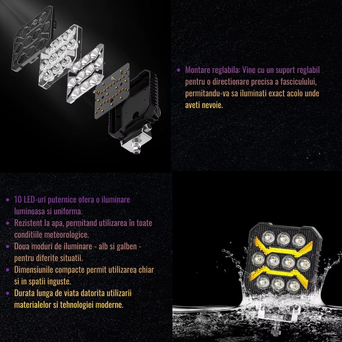 | Tip lumina | 10 LED-uri tip spot (alb) + DRL (galben) |
