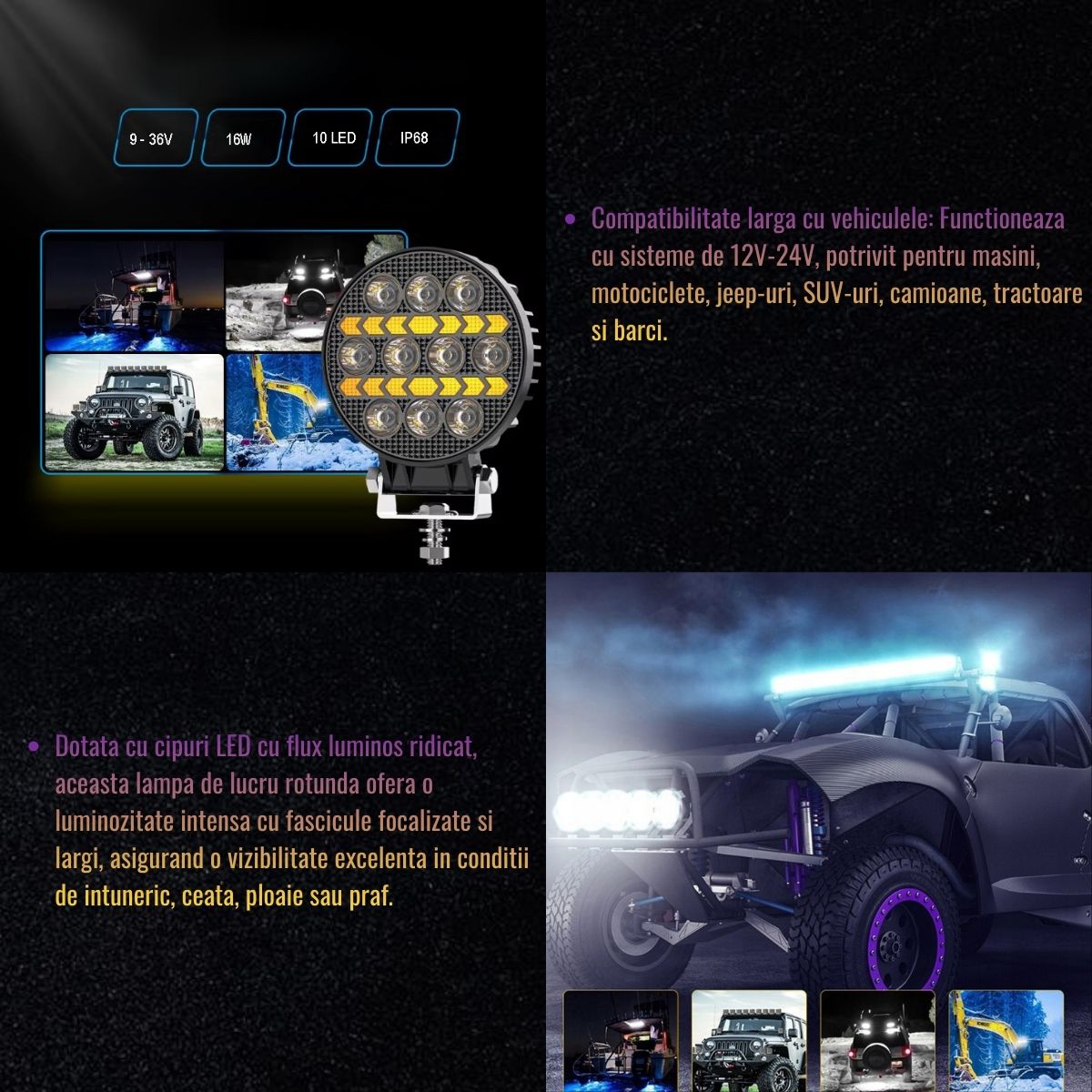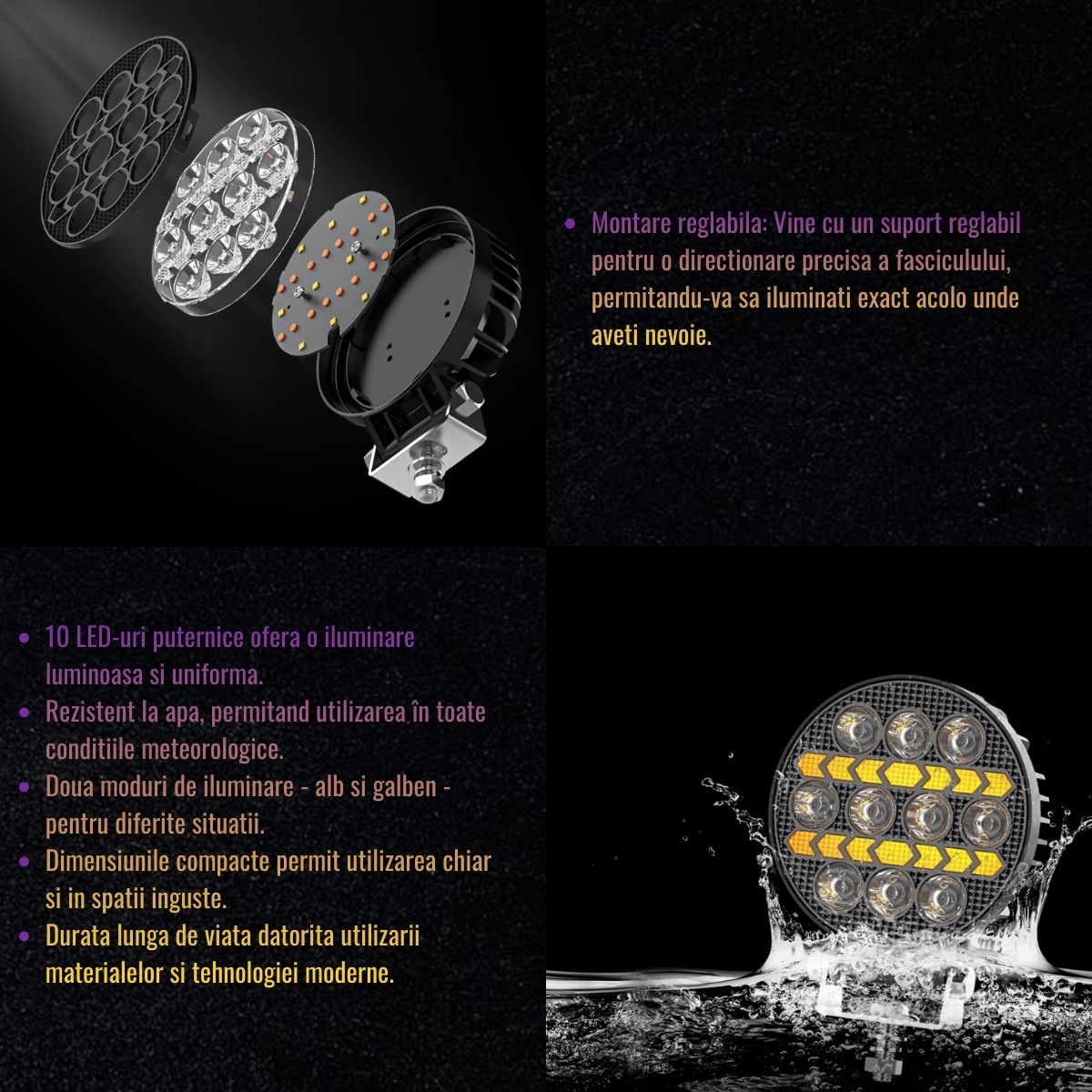 | Tip lumina | 10 LED-uri tip spot (alb) + DRL (galben) |